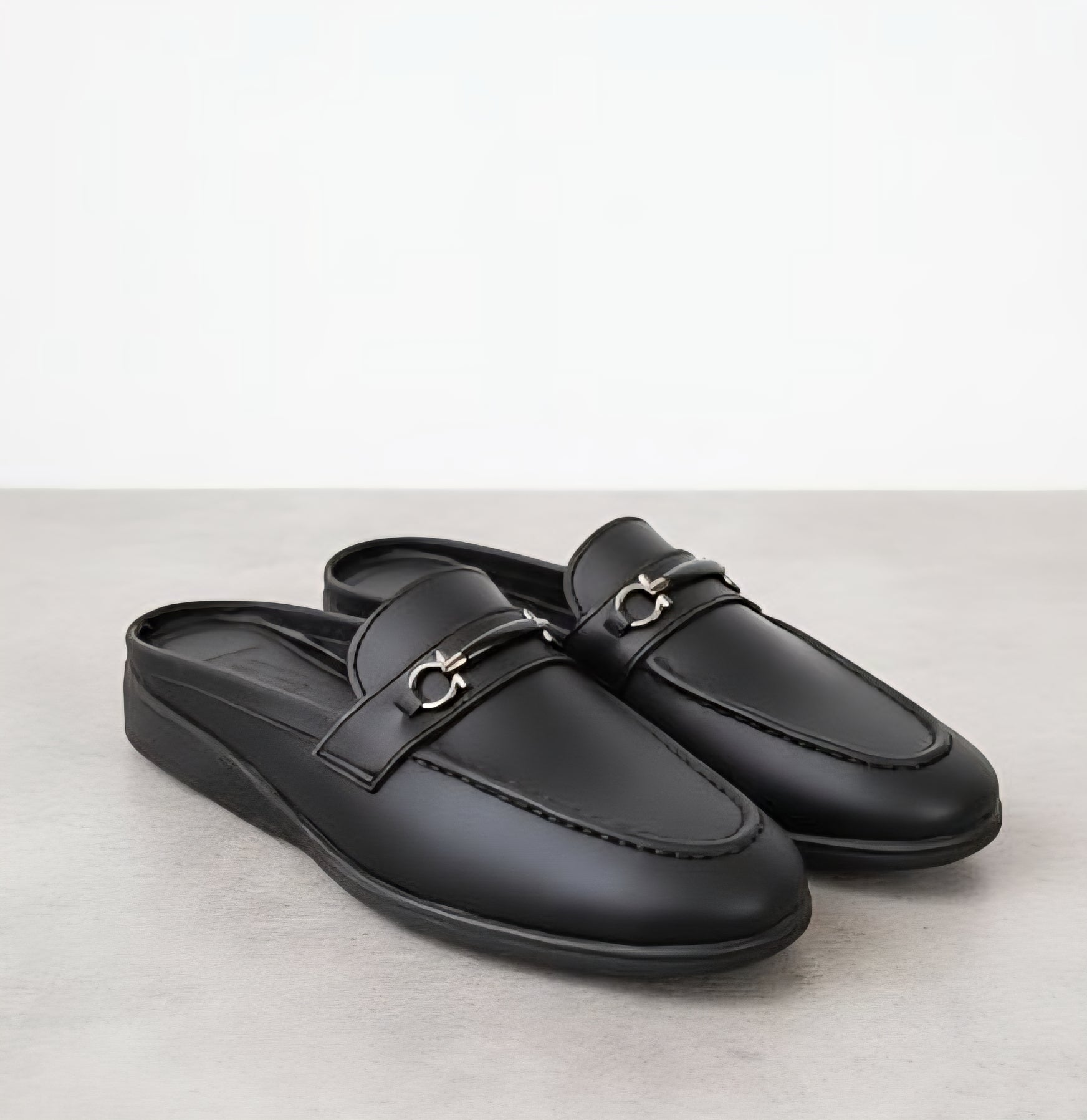 MEDICATED Premium Quality Leather Mule Loafers , Dark blacked .