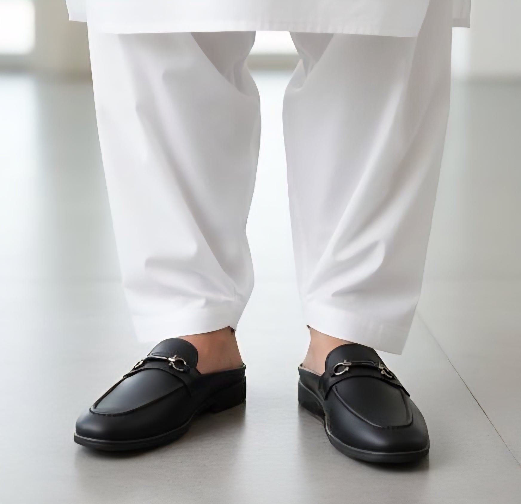 MIB PURE BLACK LEATHER MEDICATED HANDMADE MULE