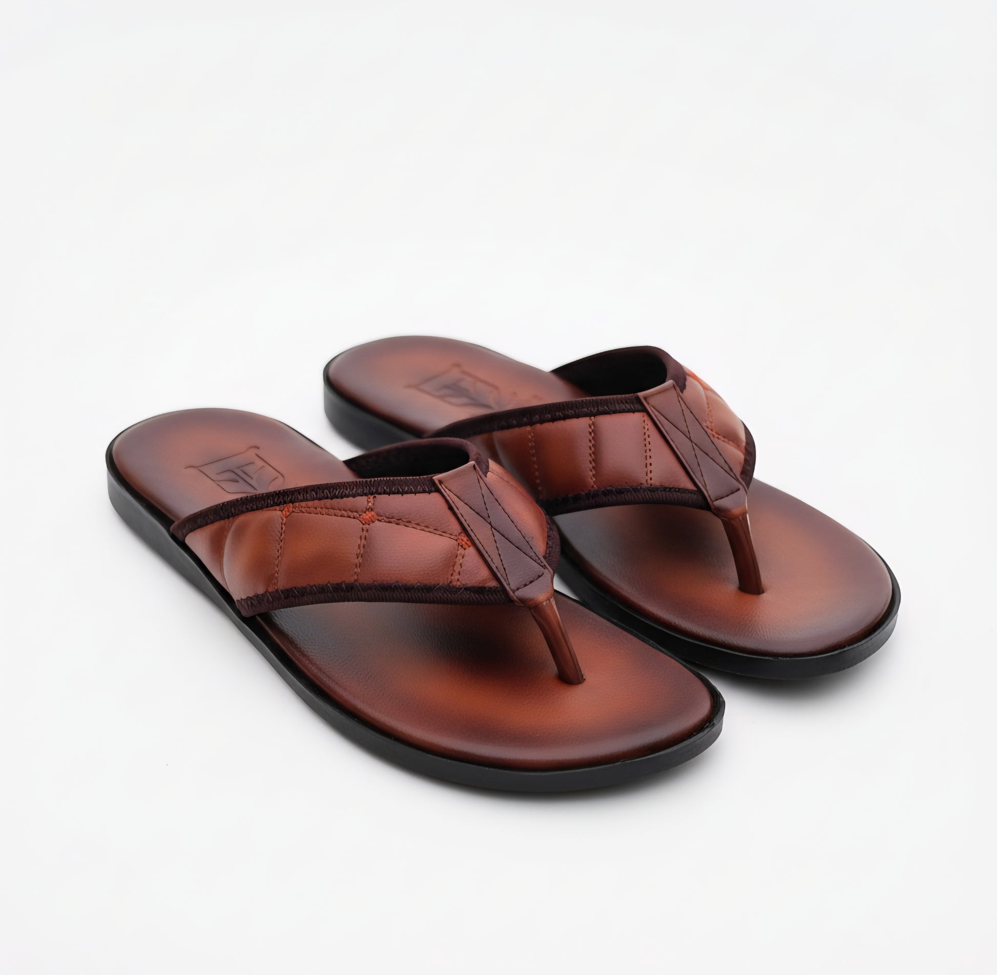 - 100% Handmade Leather Slippers , Dual Tone - Brown Shaded .